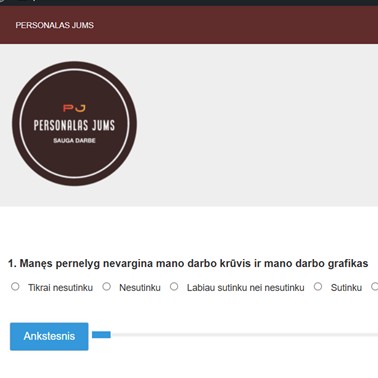 Personalas Jums turi specialistus, atitinkančius kvalifikacinius reikalavimus, nustatytus Psichosocialinių profesinės rizikos veiksnių tyrimo metodiniuose nurodymuose ir galinčius efektyviai bei greitai atlikti vertinimą.